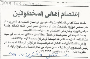 اعتصام امام مجلس الوزراء و بيان للتذكير ، لجنة المخطوفين تواصل بحثهاعن 17 الف مفقود