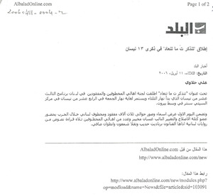 اطلاق تنذكر تما تنعاد في ذكرى، 13 نيسان
