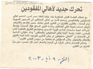 تحرك اهالي المخطوفين والمفقودين يدخل اسبوعه الثاني: اللجنة تقرر مواصلة الاعتصام واقفال المعابر واجتماع مع قريطم اليوم لمناقشة مضمون قرارات الحكومة
