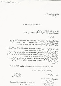 طلب اذن من محافظ مدينة بيروت لاقامة معرض فني