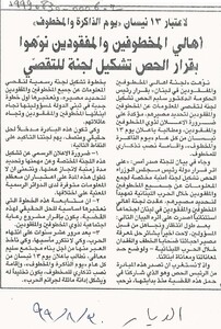 لاعتبار 13 نيسان يوم الذاكرة والمخطوف، اهالي المخطوفين والمفقودين نوهوا بقرار الحص تشكيل لجنة للتقصي