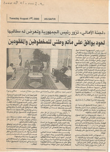 لجنة الاهالي تزور رئيس الجمهرية وتعرض له مطالبها، لحود يوافق على ماتم وطني للمخطوفين والمفقودين