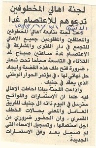 لجنة اهالي المخطوفين تدعوهم للاعتصام غدا