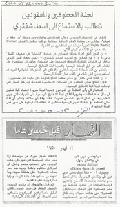 لجنة المخطوفين والمفقودين تطالب بالاستماع الى اسعد شفتري
