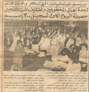 لجنة اهالي المخطوفين والمعتقلين باشرت التسجيل، حصيلة اليوم الاول تسجيل 300 اسم برسم الميليشيات التي تنكر وجودهم
