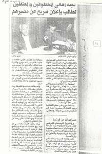 لجنة اهالي المخطوفين والمفقودين تتضامن مع الاسرى المضربين عن الطعام في السجون الاسرائيلية