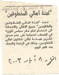 لجنة اهالي المخطوفين والمفقودين: تشكيل لجنة رسمية خطوة جديدة