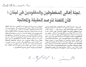 لجنة اهالي المخطوفين والمفقودين في لبنان: نريد معرفة مصير من خطفتهم الميليشيات