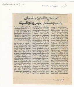 لجنة اهالي المفقودين والمخطوفين: لن نسمح باستثمار رخيص ووقح لقضيتنا