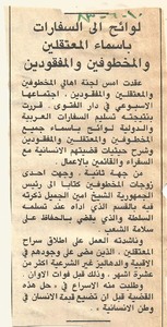 لوائح الى السفارات باسماء المعتقلين والمخطوفين والمفقودين