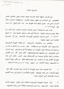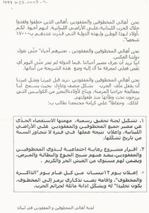 مشروع مذكرة لجنة الاهالي يتعلق بنتائج عمل هيئة تلقي شكاوى اهالي المفقودين