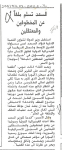 السعد تسلم ملفا عن المخطوفين والمعتقلين