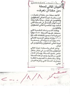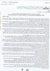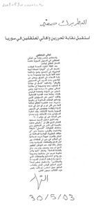 البرقيّة التي وجّهتها لجنة المحامين للدفاع عن الحريّات العامّة و المخطوفين والمعتقلين السيّاسيّين إلى اتّحاد المحامين العرب