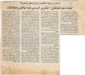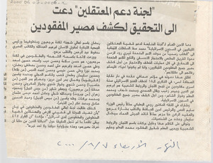 لجنة دعم المعتقلين دعت الى التحقيق لكشف مصير المفقودين