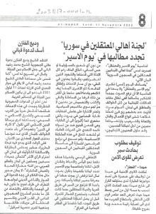 لجنة اهالي المعتقلين في سوريا تجدد مطالبها في يوم الأسير