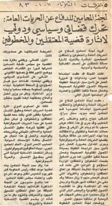 لجنة الدفاع عن معتقلي انصار تدعو التحرك في سبيل اطلاقهم