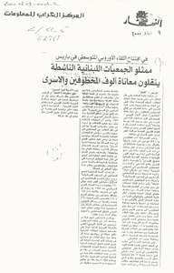 ممثلو الجمعيات اللبنانية الناشطة ينقلون معاناة الوف المخطوفين والاسرى في افتتاح اللقاء الاوروبي المتوسطي في باريس