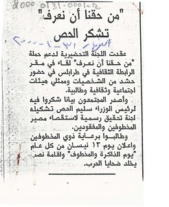 من حقنا ان نعرف: حملة اصدقاء لجنة اهالي المفقودين