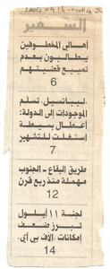 اهالي المخطوفين يقررون فك الاعتصام في المعابر، حركة المطار والمرفا تاثرت بالاضراب وبيروت اجتازت اختبارا صعبا، كرامي وبري يلتقيان الجميل في بعبدا اليوم لمعالجة واعداد الملف السياسي