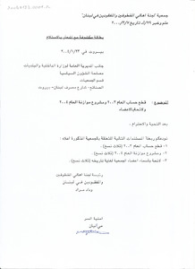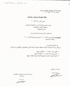 بطاقة مكشوفة مع اشعار بالاستلام قطع حساب العام، 2004 ومشروع موازنة العام، 2005
