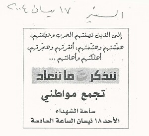 تجمع مواطني، ساحة الشهداء، الاحد 18 نيسان الساعة السادسة