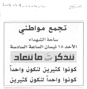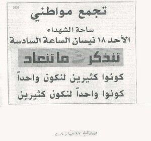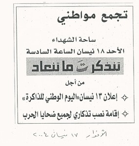 تجمع مواطني، ساحة الشهداء، الاحد 18 نيسان الساعة السادسة