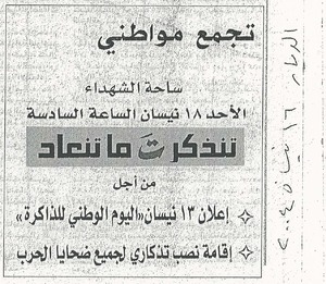 تحضير لجنة الاهالي وحملة من حقنا ان نعرف بمناسبة مرور 25 عاما على اندلاع الحرب في لبنان