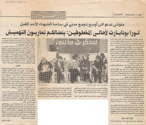 حلواني تدعو الى اوسع تجمع مدني في ساحة الشهداء الاحد المقبل لورا بونابارت لاهالي المخطوفين: بنضالكم تحاربون التهميش