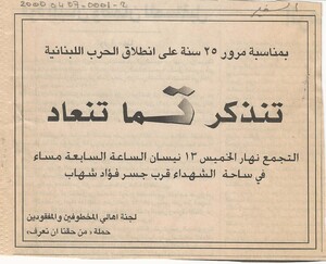 دعوة الى تجمع في 13 نيسان : يوم الذاكرة