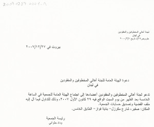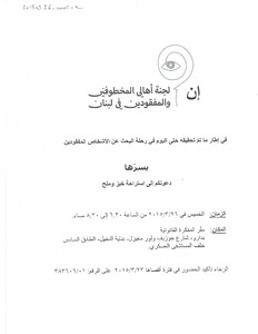 دعوة الهيئة العامة للجنة اهالي المخطوفين والمفقودين في لبنان