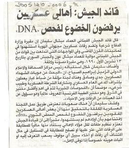 DNA قائد الجيش: اهالي عسكريين يرفضون الخضوع لفحص