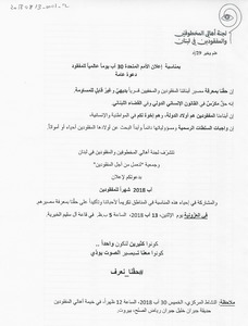 دعوة عامة لاعلان آب 2018 شهرا للمفقودين