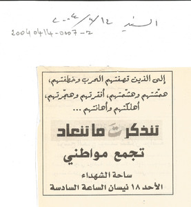 دعوة لتجمع مواطني بمناسبة 13 نيسان