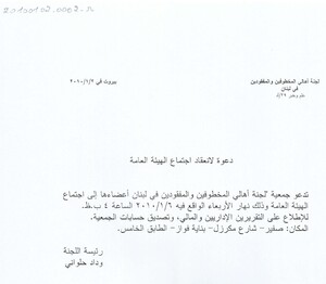 دعوة لانعقاد الهيئة العامة للجنة اهالي المخطوفين والمفقودين في لبنان