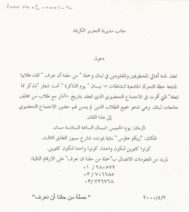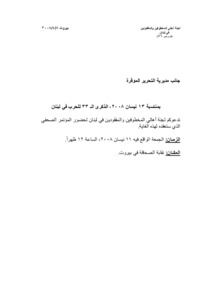دعوة لحضور مؤتمر صحافي بمناسبة 13 نيسان، 2008، الذكرى الـ 33 للحرب في لبنان