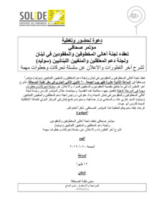 دعوة لحضور وتغطية مؤتمر صحافي تعقده لجنة أهالي المخطوفين والمفقودين في لبنان ولجنة دعم المعتقلين والمنفيين اللبنانيين سوليد، لشرح آخر التطورات والاعلان عن سلسلة تحركات وخطوات مهمة