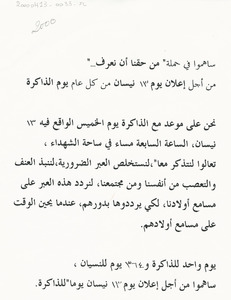 دعوة للمشاركة في نشاط 13 نيسان : يوما للذاكرة