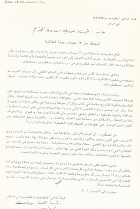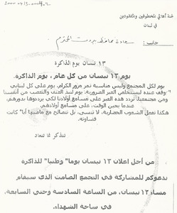 دعوة من اجل اعلان 13 نيسان يوم الذاكرة