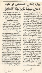رسالة لاهالي المخطوفين الى لحود: لاعلان نتيجة تقرير لجنة التحقيق