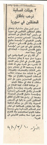 3 هيئات انسانية ترحب باطلاق المعتقلين في سوريا