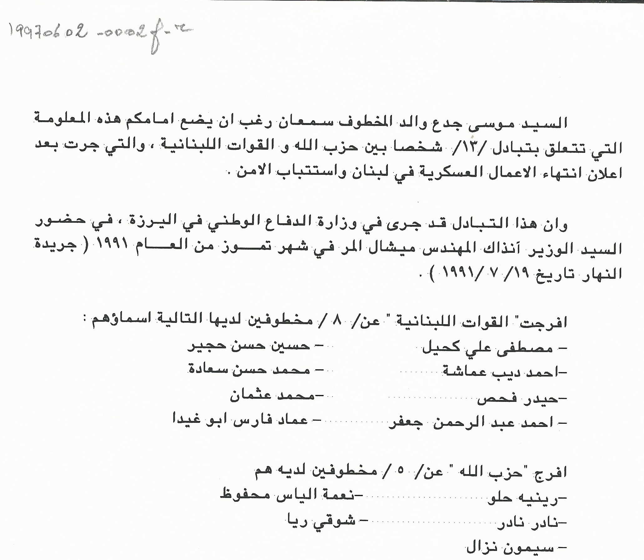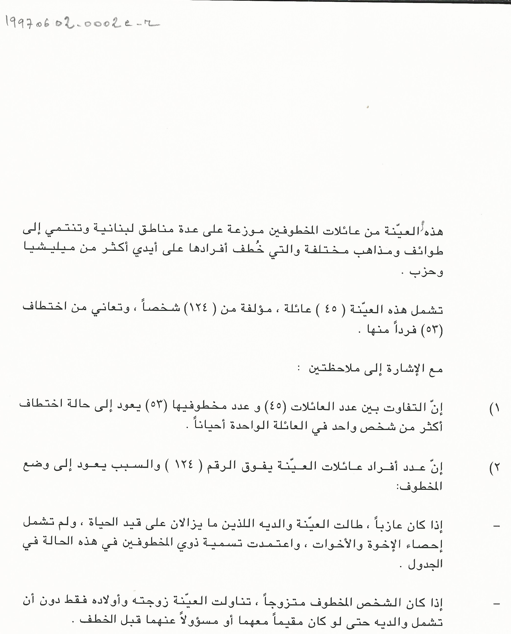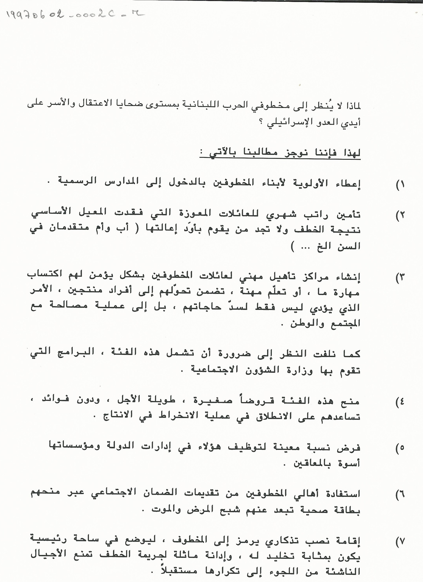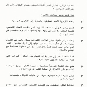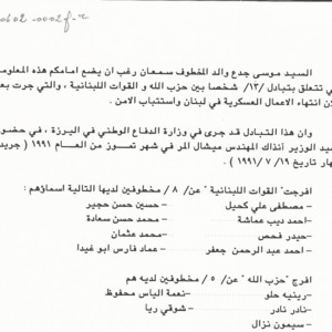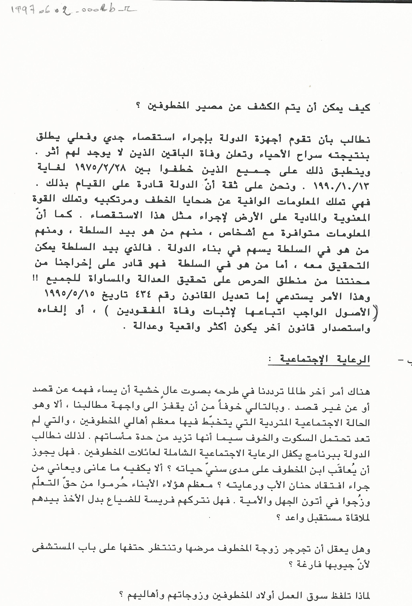 مذكرة الى السيدة الاولى منى الهراوي للمطالبة بالكشف عن مصير المخطوفين وتأمين الرعاية الاجتماعية لعائلاتهم