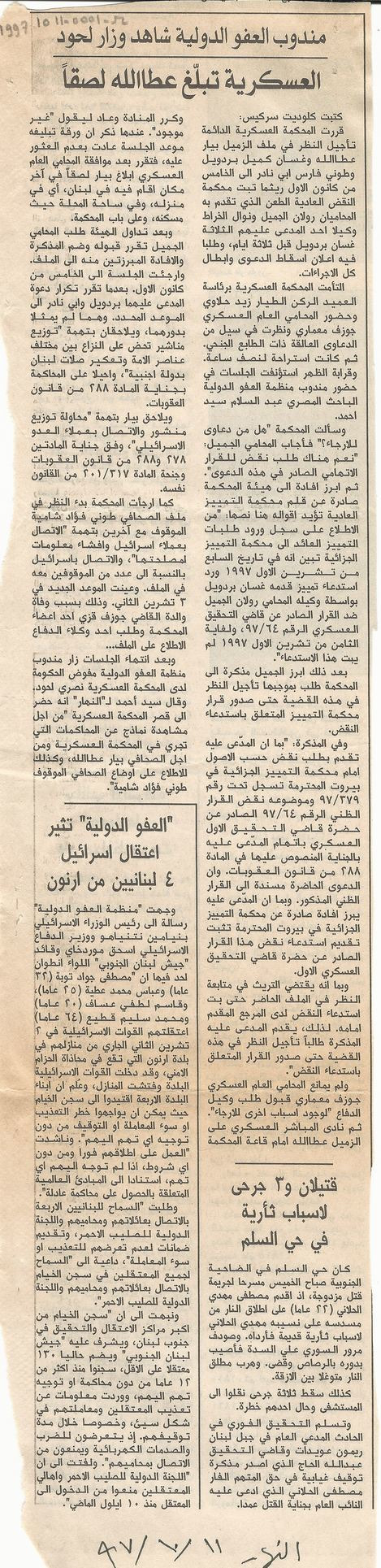 مندوب العفو الدولية شاهد وزار لحود العسكرية تبلغ عطالله لصقا