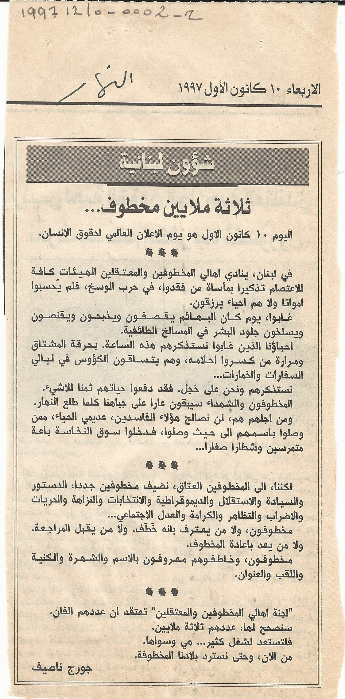 - ar ثلاثة ملايين مخطوف