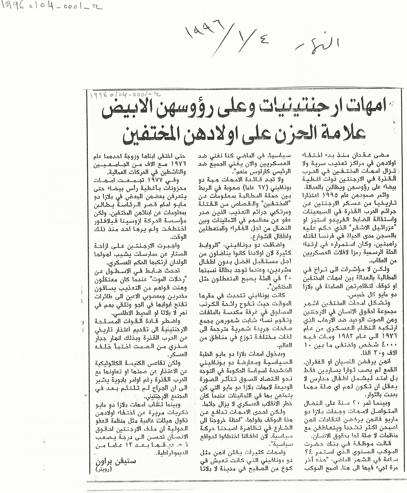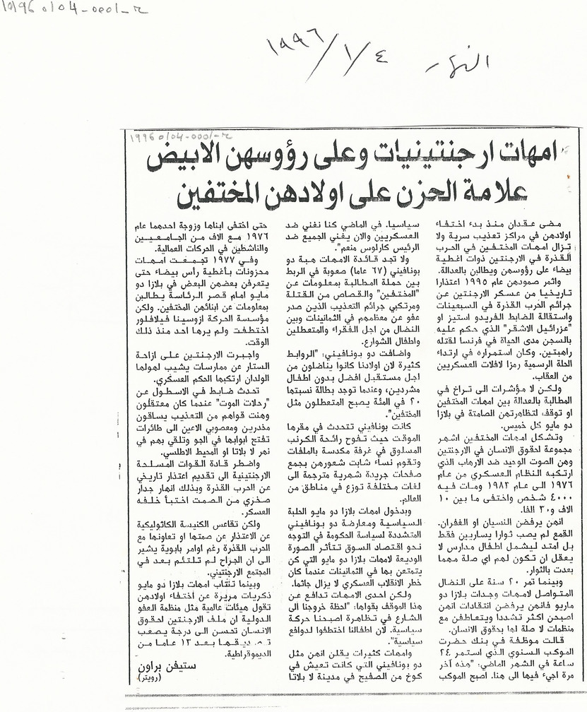 - ar امهات ارجنتينيات وعلى رؤوسهن الابيض علامة الحزن على اولادهن المختفين