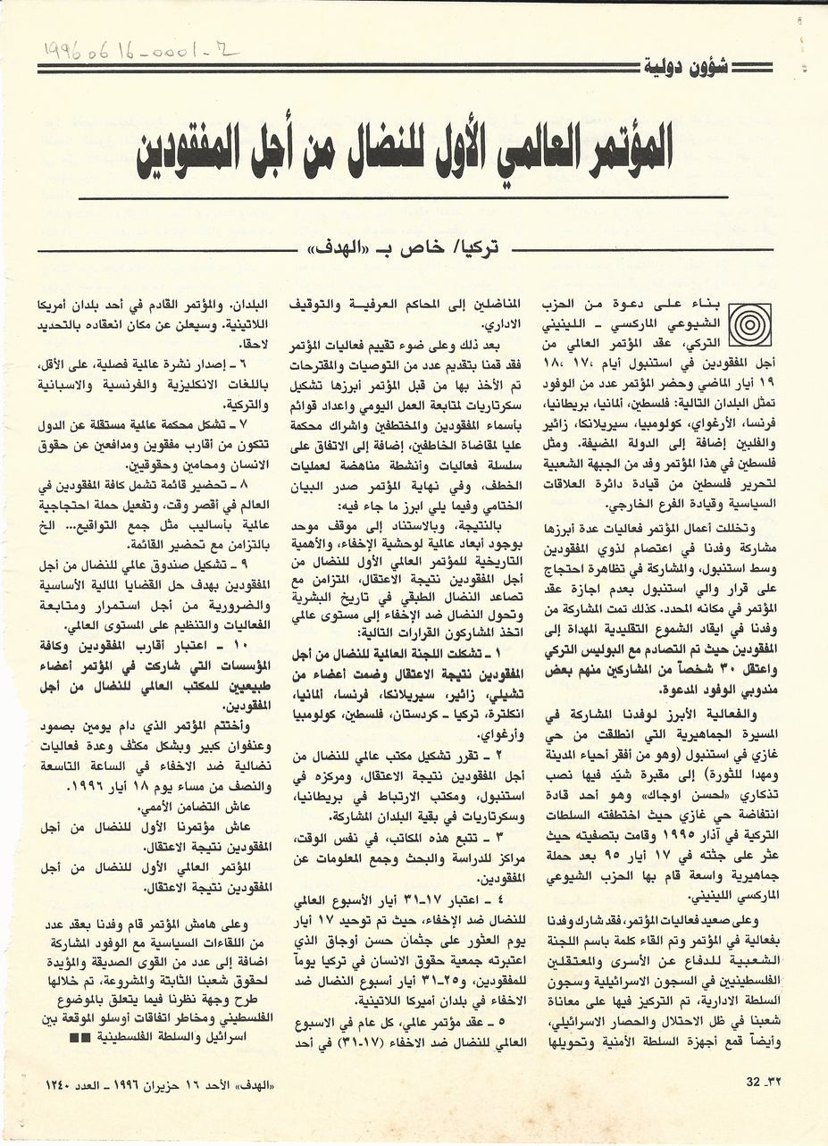 - ar المؤتمر العالمي الاول للنضال من اجل المفقودين