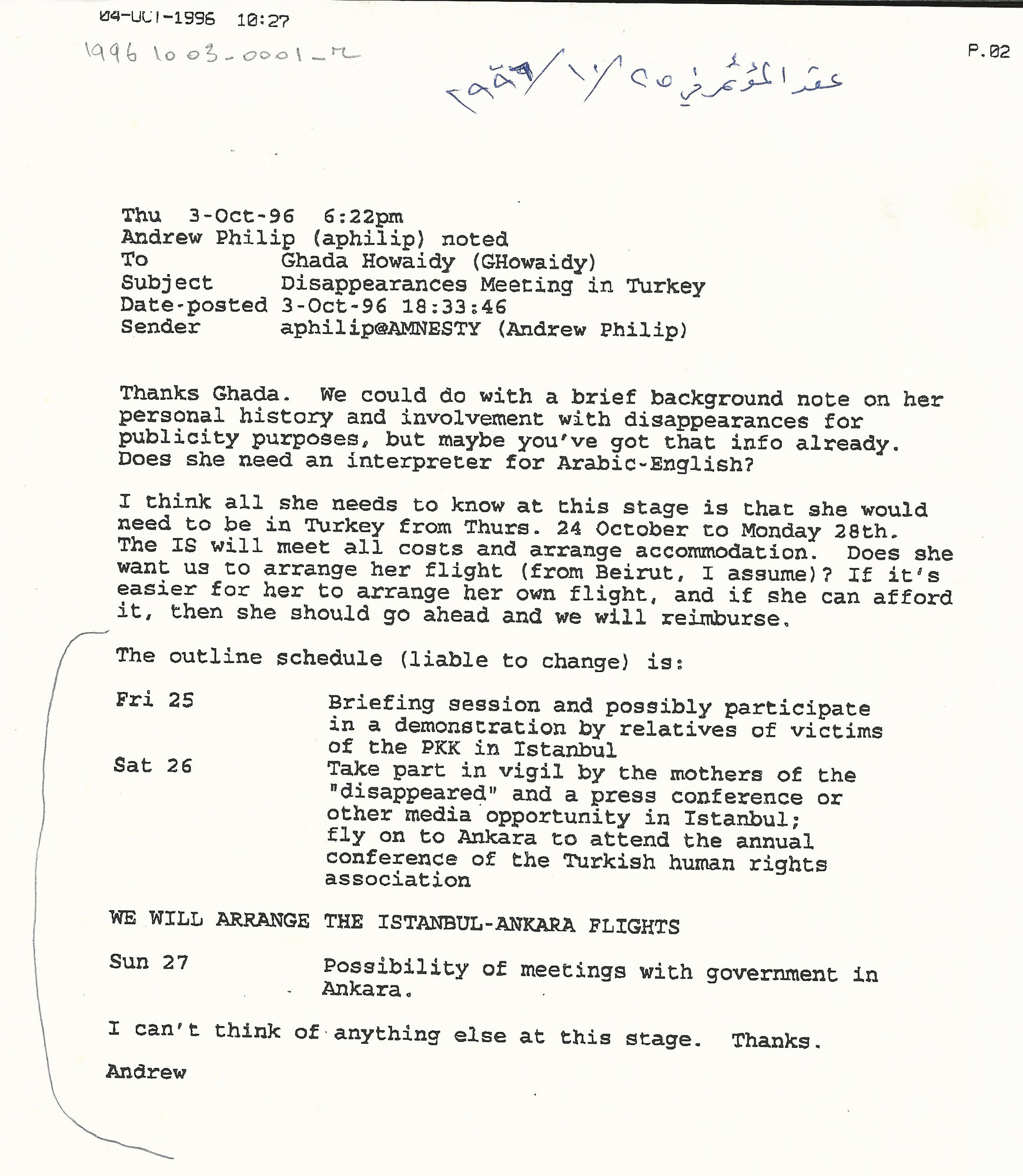 - en Letter to Ghada Houwaidy about Disappearances meeting in Turkey