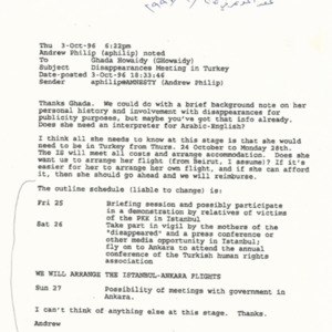 Letter to Ghada Houwaidy about Disappearances meeting in Turkey