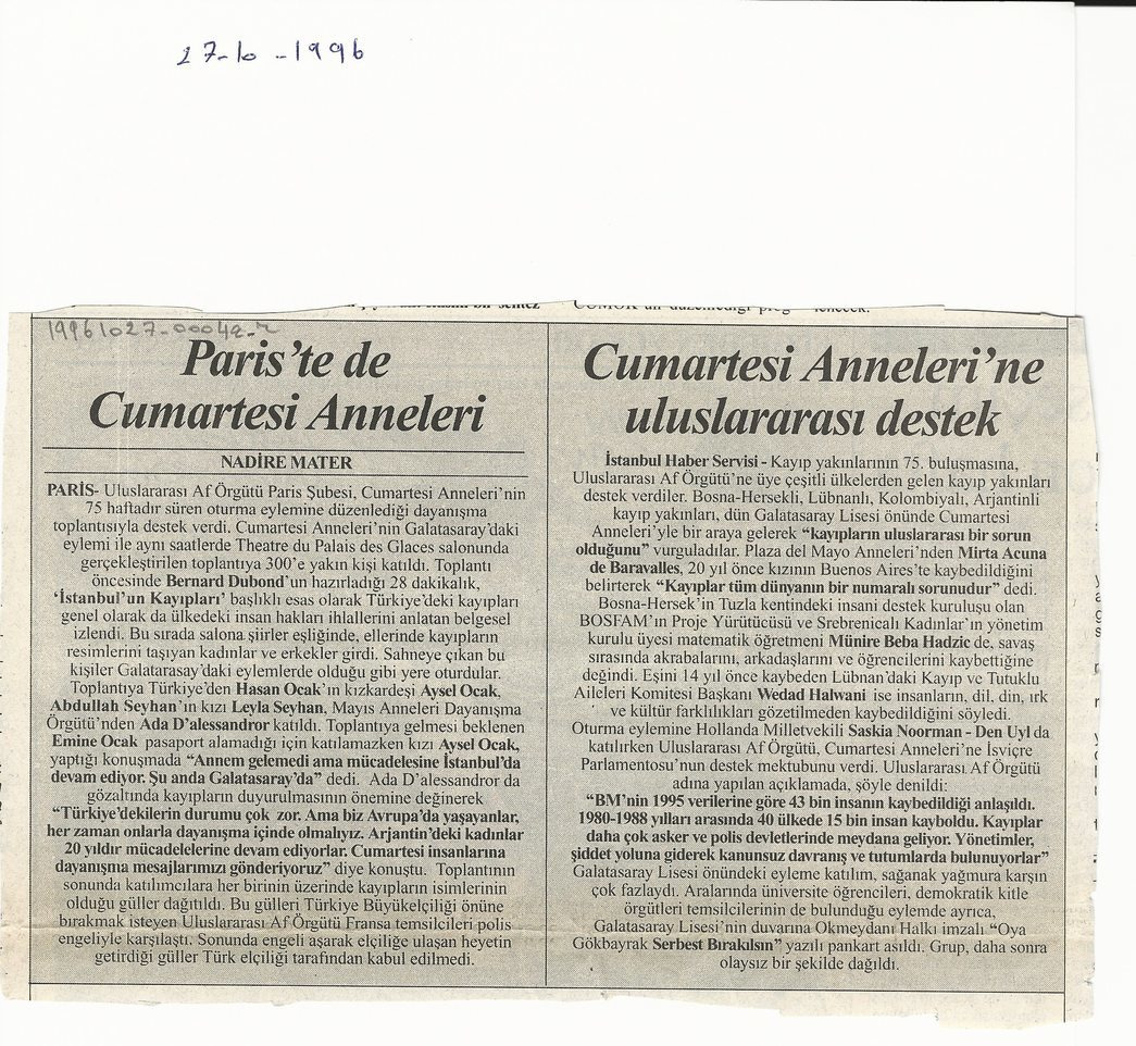 - en Saturday Mothers in Paris too, International support for Saturday Mothers