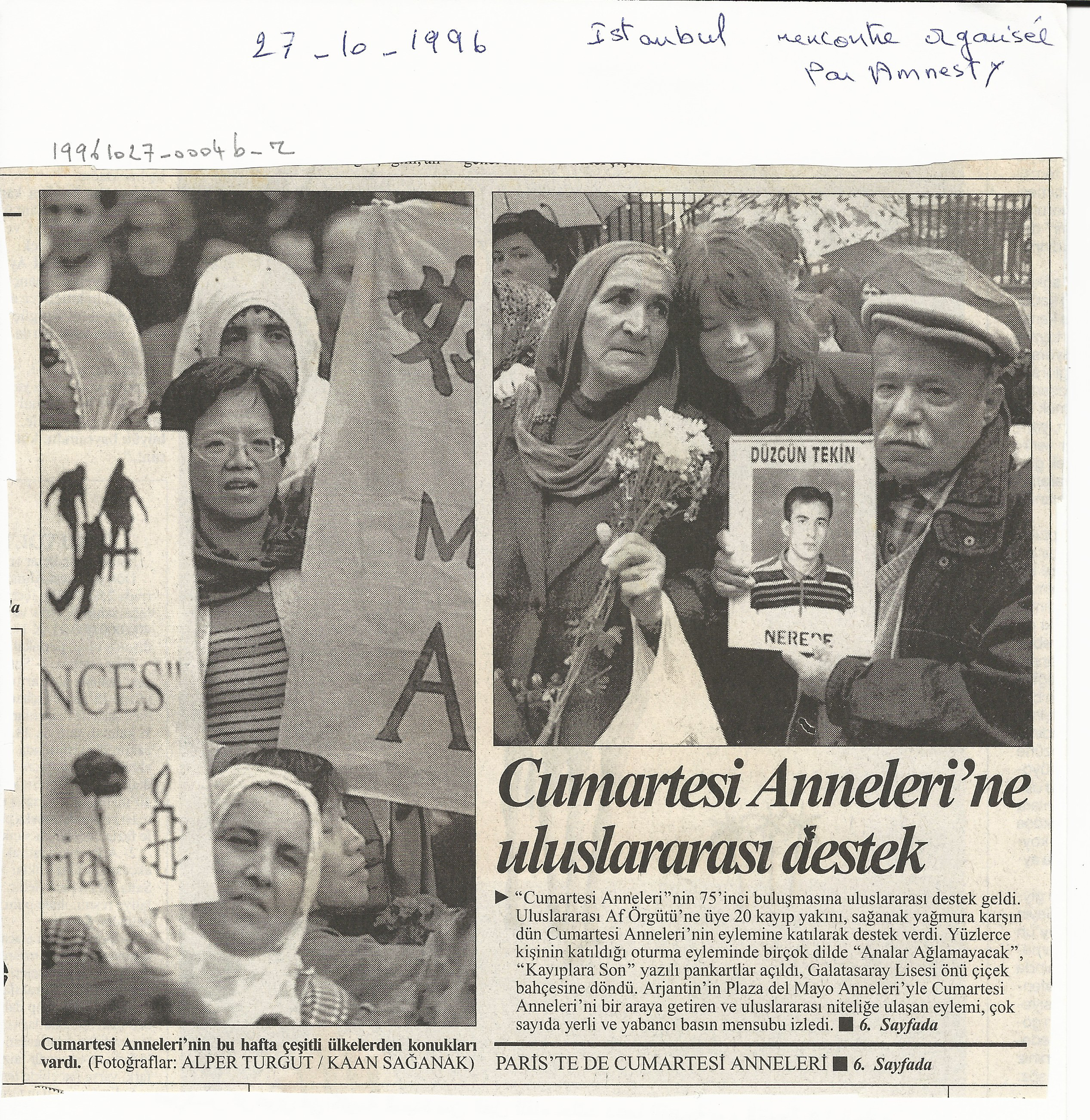 - tr Paris'te de Cumartesi Anneleri, Cumartesi Anneleri'ne uluslararasi destek
