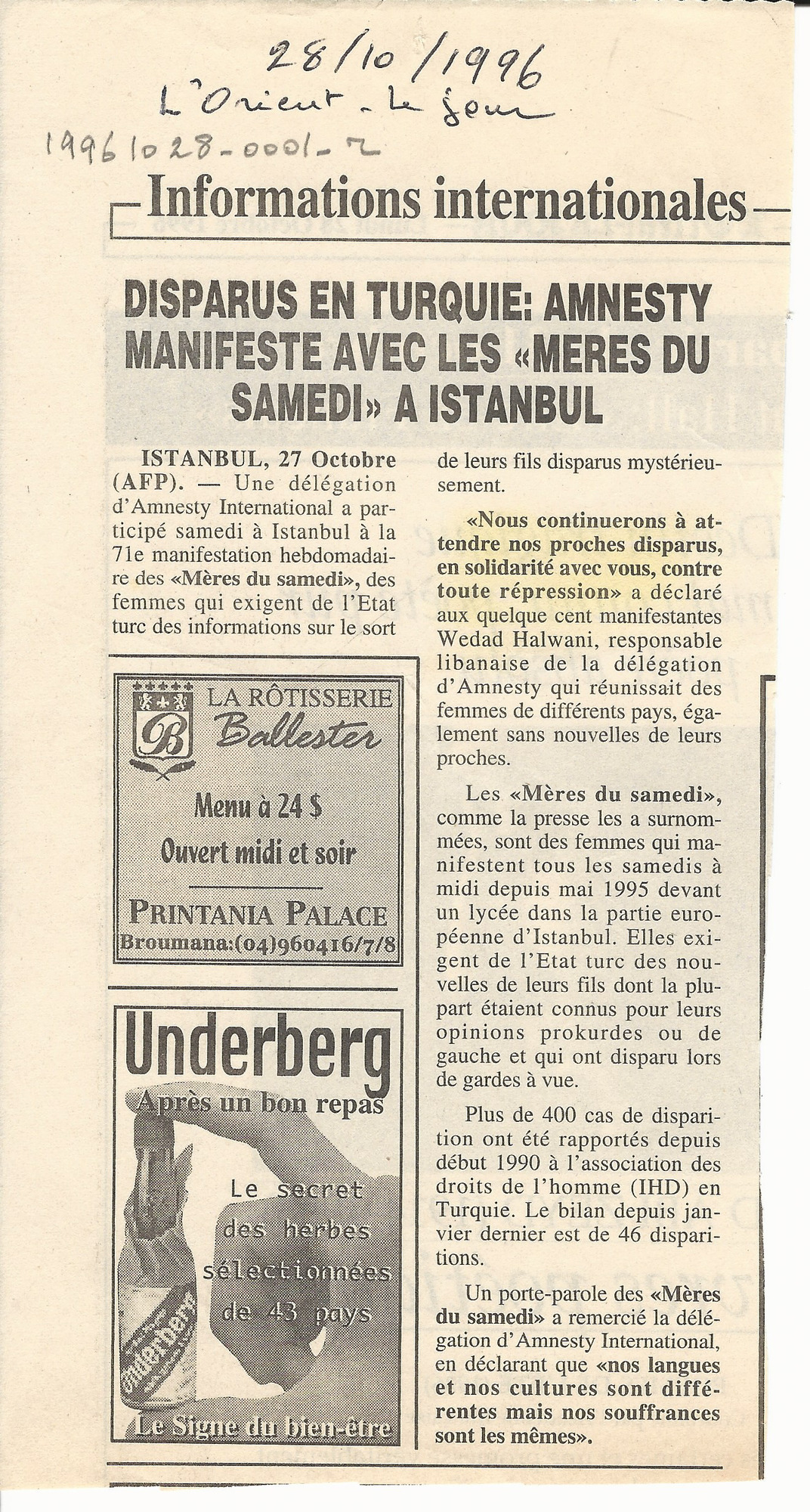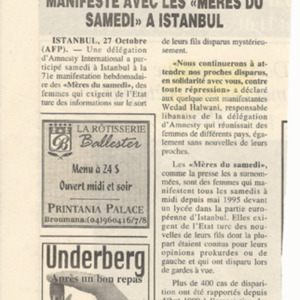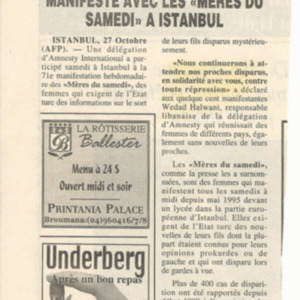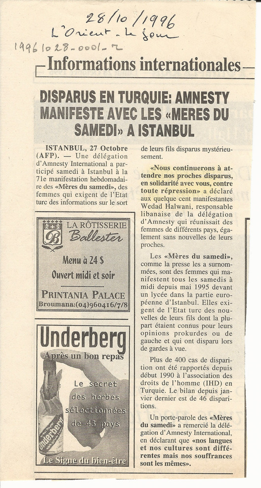 - fr Disparus en Turquie: Amnesty manifeste avec les "meres du samedi" a Instanbul